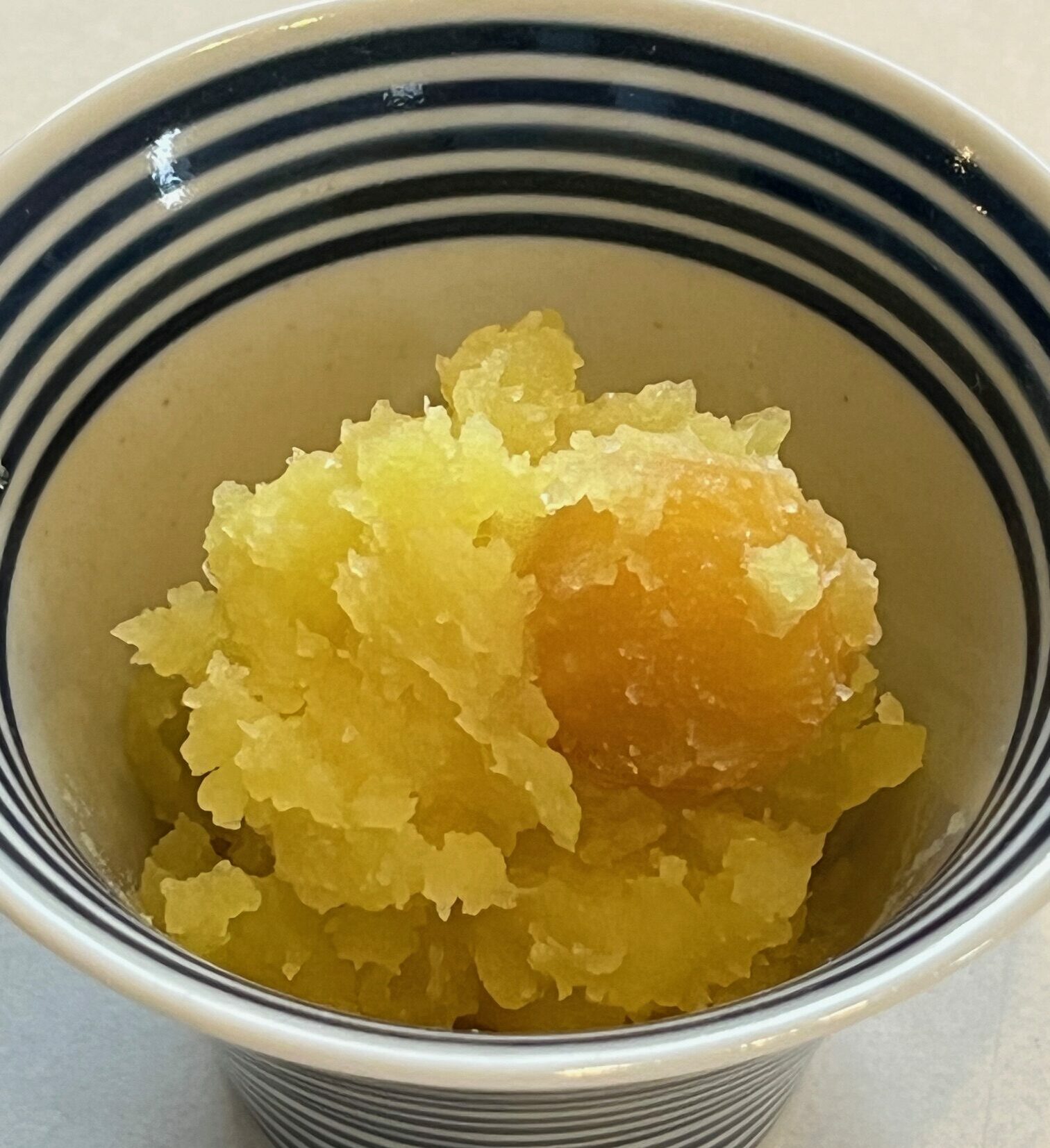 4)鍋からさつまいもを取り出し、あたたかいうちに漉し器やざるなどで裏ごしする